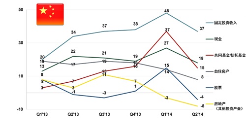 - 中国投资者资产投资意向全线回落,股市、基金和固定收益理财产品意向降幅最为突出