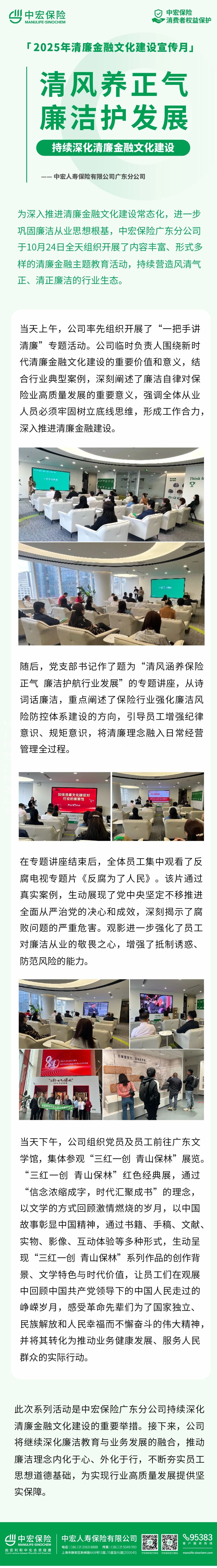 清风养正气 廉洁护发展-中宏保险广东分公司持续深化清廉金融文化建设